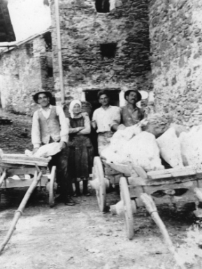 sacchi a valle con la gerla, nel magazzino di Tornadri, dove c’erano i macchinari