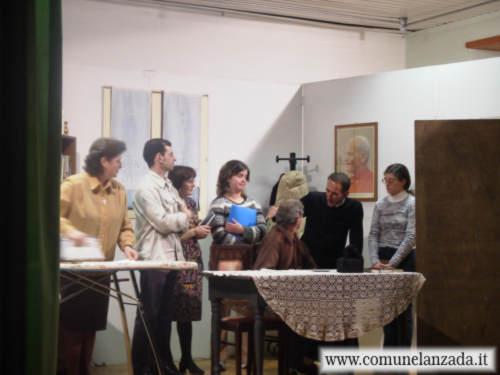 MANIFESTAZIONE: Nä sitüaziuņ balurdo e Ul prublemiņ dul Gigi, rappresentazione teatrale. ORGANIZZATORE: Biblioteche della Valmalenco DESCRIZIONE: Compagnia "Amici degli Anziani" di Talamona La Compagnia "Amici degli Anziani" di Talamona ha esordito per la prima volta nel dicembre '93 rappresentando in dialetto, con la regia di Ernesto Croci, la commedia "Glič mingo stori, ič ropp ch'č capitaa". Il gruppo ha proseguito, poi, nel '94 con "Ul temp chč ladru", nel '96 con "Quatru ciacčr in famiglio" e nel '97 con "Nä trapulo per ul sciur trapulo". Questi testi sono tutti della nota scrittrice talamonese Ines Busnarda Luzzi. Dal '98 c'č stato un cambio di regia passata a Cesare Ciaponi, con la rappresentazione delle commedie. "Nä divisiun da brigo" (anno '99), "Ul prucčss al gati pelus" terzo premio al concorso provinciale Mazzoleni Passerini nel '99 e per ultimo "L'amuur si! mä la robo..." nell'anno 2001. E' questa una compagnia mista, sia per sesso che per etā, che va dai 12 fino ai 70 anni. Nä sitüaziuņ balurdo Regia di Cesare Ciaponi Racconta di una famiglia con due figli oltre i 20 anni, con suocera a carico e sospetti di bebč in arrivo. A complicare ulteriormente le cose una licenza improvvisa del figlio militare a Palermo. E' veramente "Nä sitüaziuņ balurdo". Ul prublemiņ dul Gigi Racconta le vicende di un povero uomo disperato, che non era sano, ma nemmeno ammalato. Alla fine la forza dell'amore fa superare ostacoli che parevano insormontabili e finalmente il povero Gigi trova pace e pure la felicitā. Personaggi e Intepreti Cesare Ciaponi, Daniela Maffezzini, Flavio Ciaponi, Margherita Ciaponi, Paola Vairetti, Serena Bertolini, Simona Duca, Stefano Ciaponi. Sugg. Daniela Bianchini.