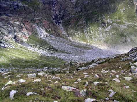 ![]() la discesa che dall'alpe Fellaria porta verso il fondo della diga Enel di Gera |