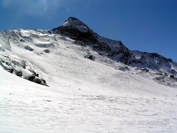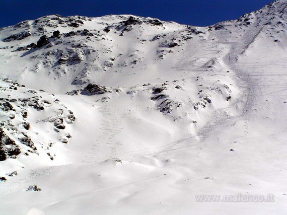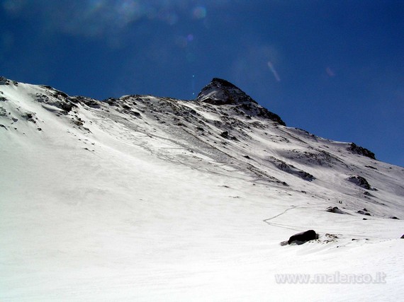 ![]() il pizzo Scalino, ben visibile la traccia sulle sue coste per arrivare al Cornetto |