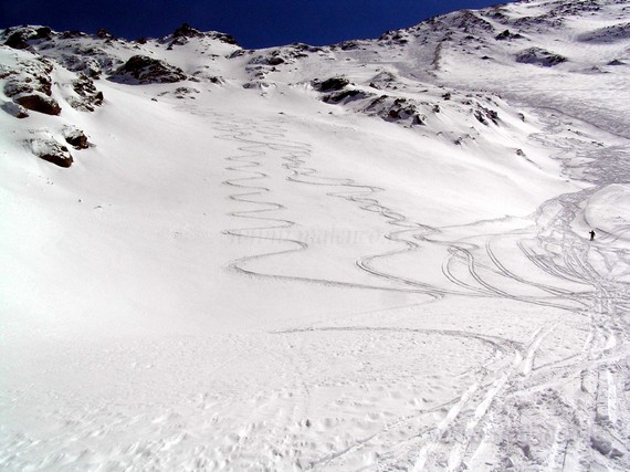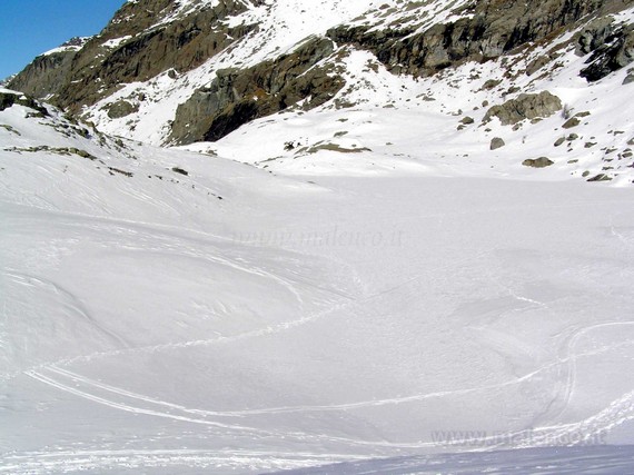 ![]() a sinistra discesa della Belma e a destra il canalino del Cornetto |