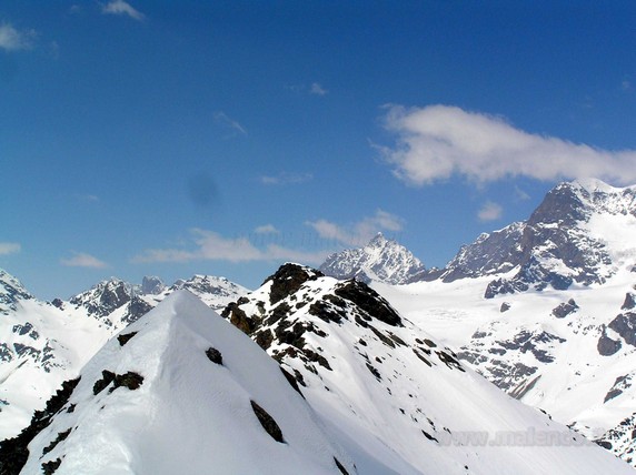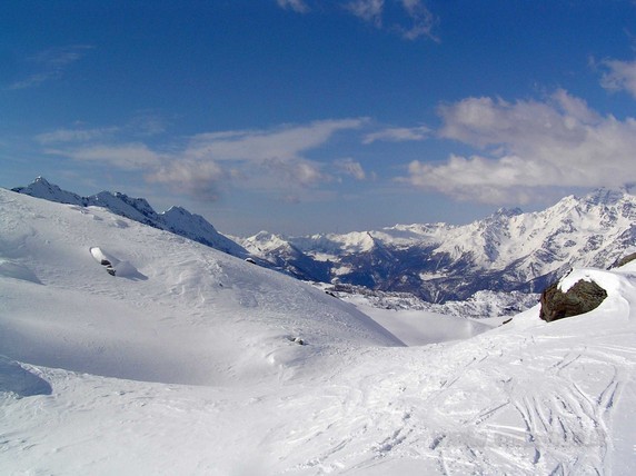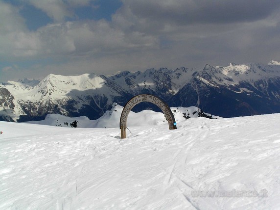 ![]() in cima alla valle Poschiavina con sullo sfondo il gruppo del Bernina |