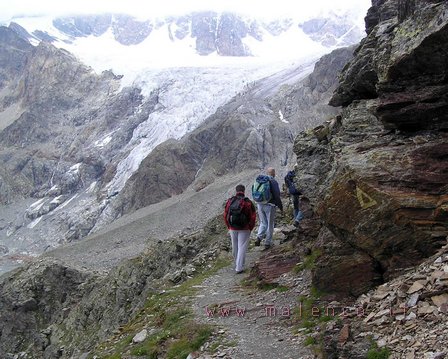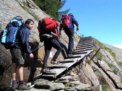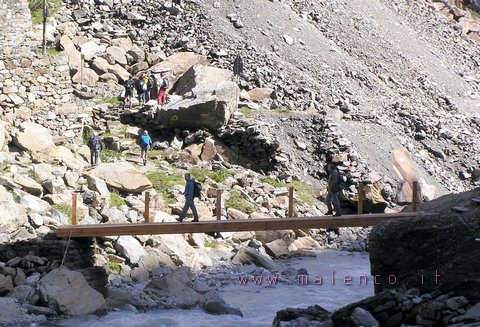 ![]() uno dei tanti ponti da attraversare, dietro il ghiacciaio dello Scerscen superiore |
