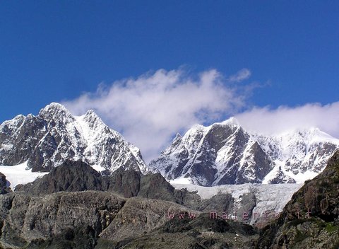 ![]() il Gruppo del Bernina (metti il mouse per il rif. Marco e Rosa e la cresta Guzza) |
