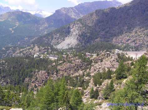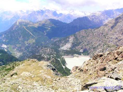 ![]() la diga di Campo Moro, dietro il monte Motta e sullo sfondo il monte Disgrazia |