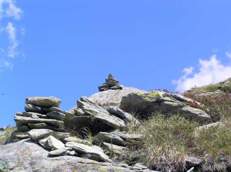 ![]() in seguito il sentiero è ben segnato con dei sassi accatastati |