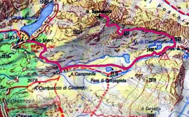 ![]() cartina dalla cima Spundascia alla cima orientale e ritorno a Campo Moro |